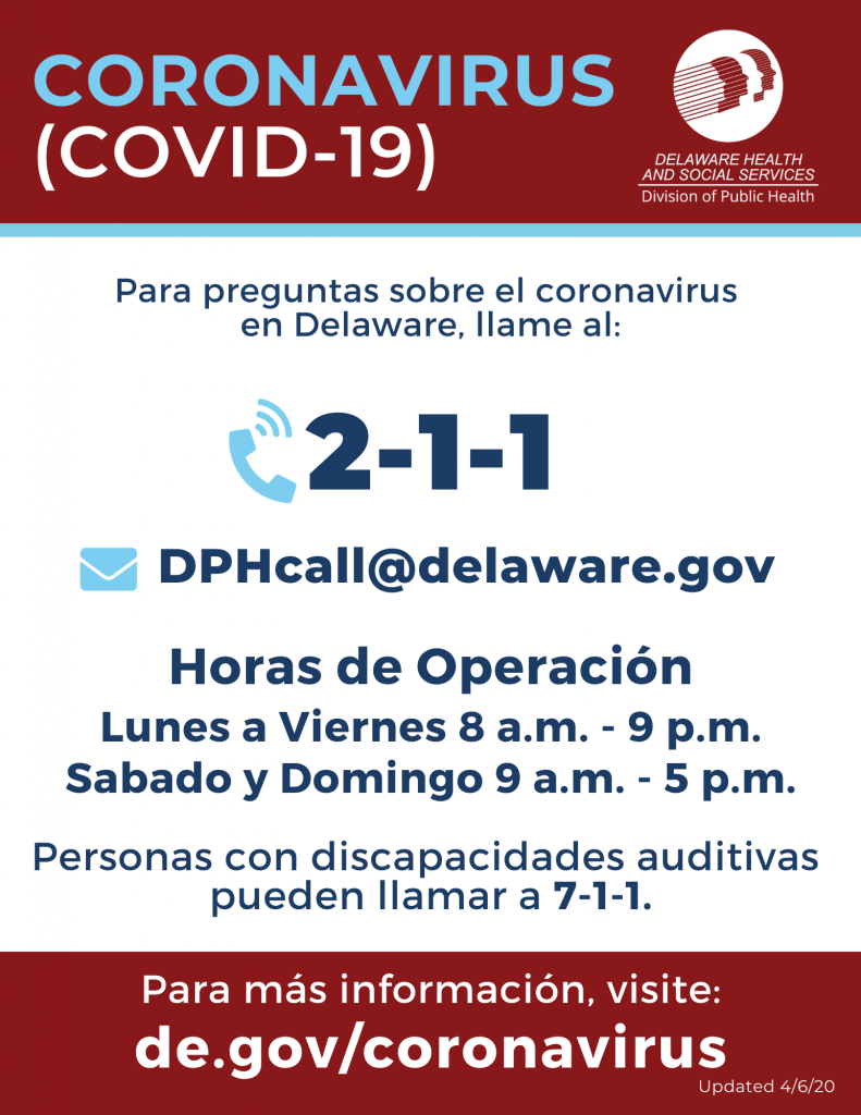 Related Topics: cómo hacerse la prueba, COVID-19, Espanol, llame al 211, mascarilla Delaware, pruebas coronavirus, pruebas Delaware, Recursos en Español, Requisitos de Pruebas